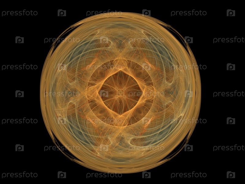 3D-рендеринг с желтым абстрактным круговым фракталом в виде цветочного узора
