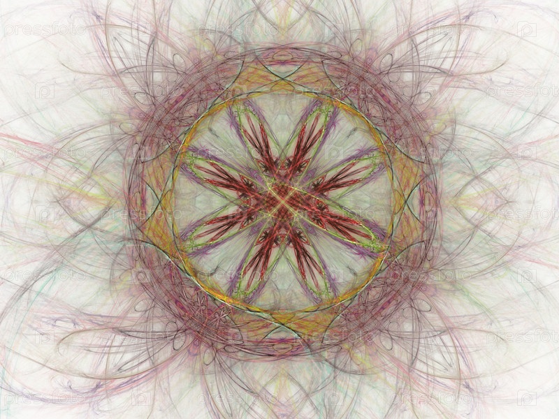 3D-рендеринг с красно-желтым абстрактным фракталом в виде цветочного узора