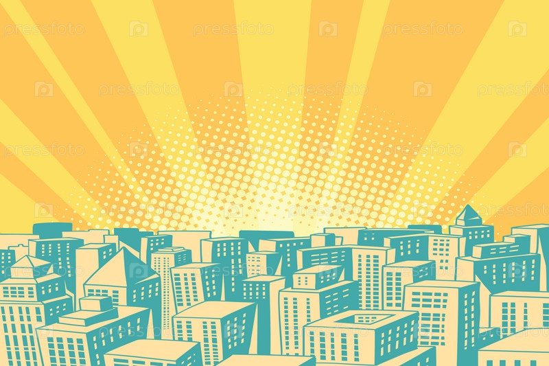 Поп-арт восход солнца над современным городом