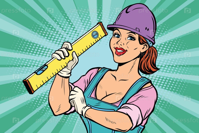 Строитель с уровнем. Женщина