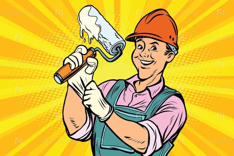 Строитель с валиком для краски