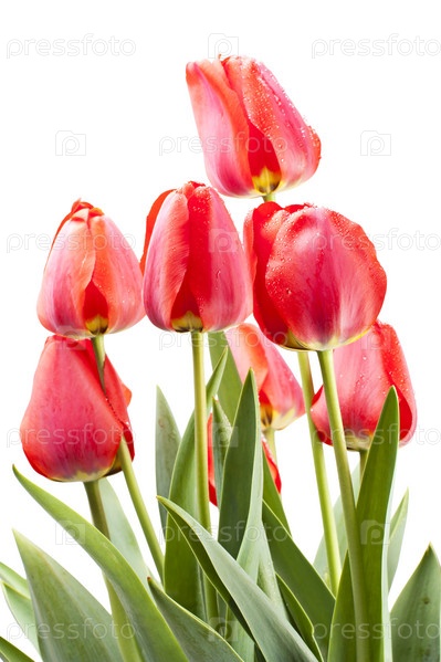 Красные тюльпаны, изолированные на белом фоне