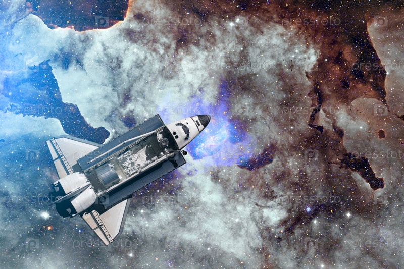 Полет космического корабля над космической туманностью