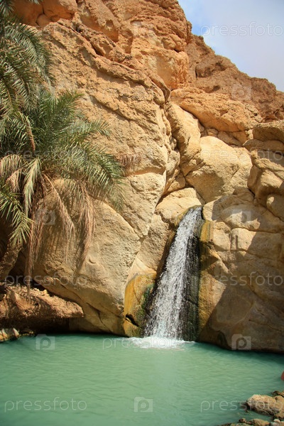 Водопад в оазисе Шебека, граница Туниса и Алжира