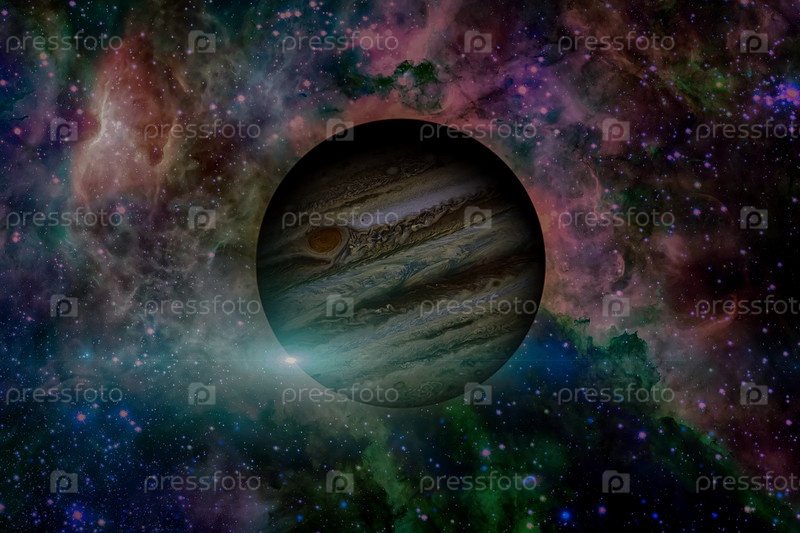 Планета Юпитер. Туманность на заднем плане