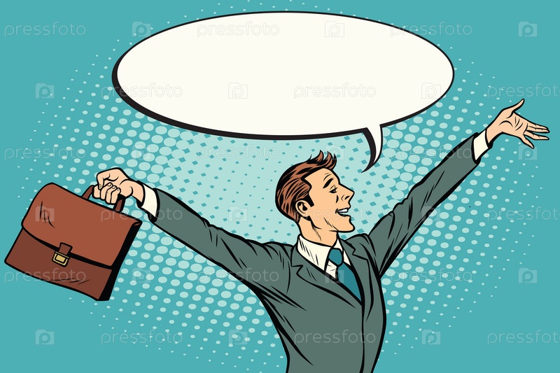 Счастливый ретро-бизнесмен с портфелем