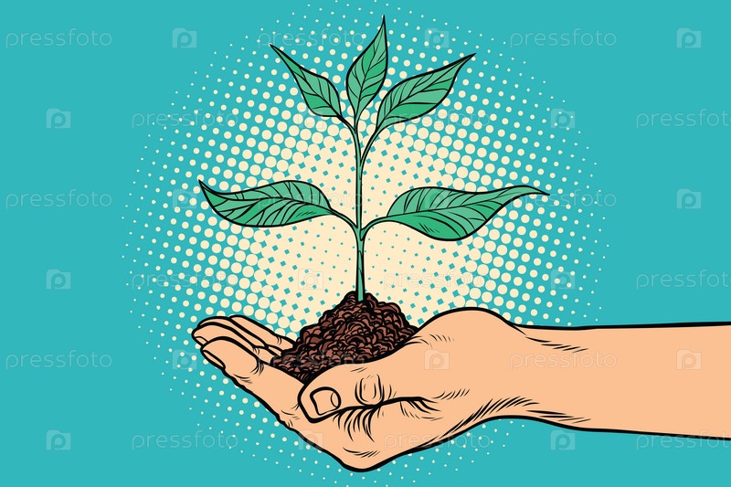 Зеленый росток в руке
