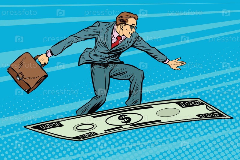 Бизнесмен летает на долларе