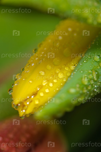 Свежий желтый тюльпан с каплями воды
