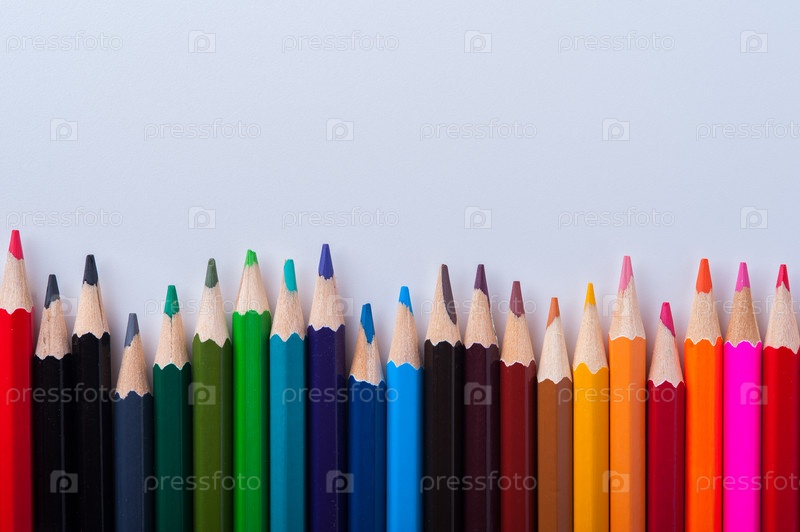 Группа заостренных карандашей на белом фоне