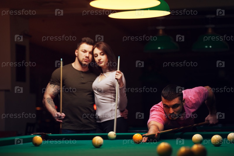 Молодые люди играют в бильярд