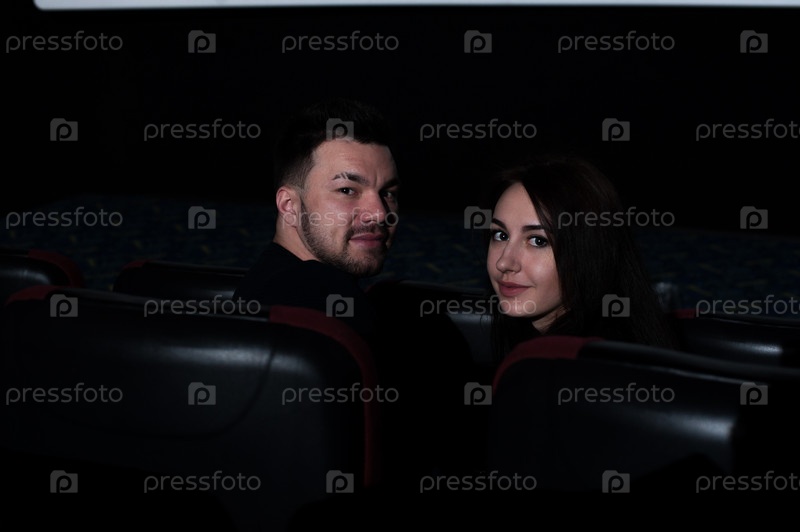 Молодая романтичная пара в кинотеатре