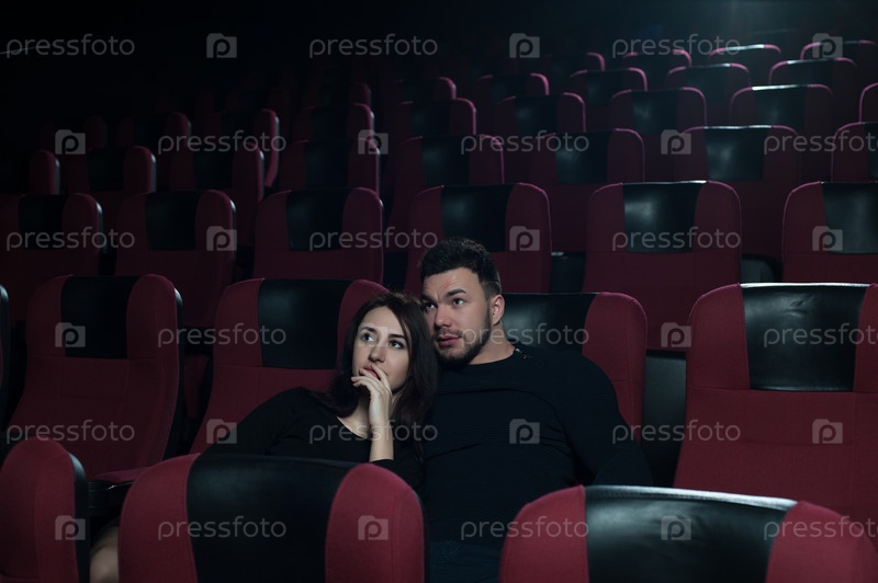Счастливые улыбающиеся люди в кинотеатре