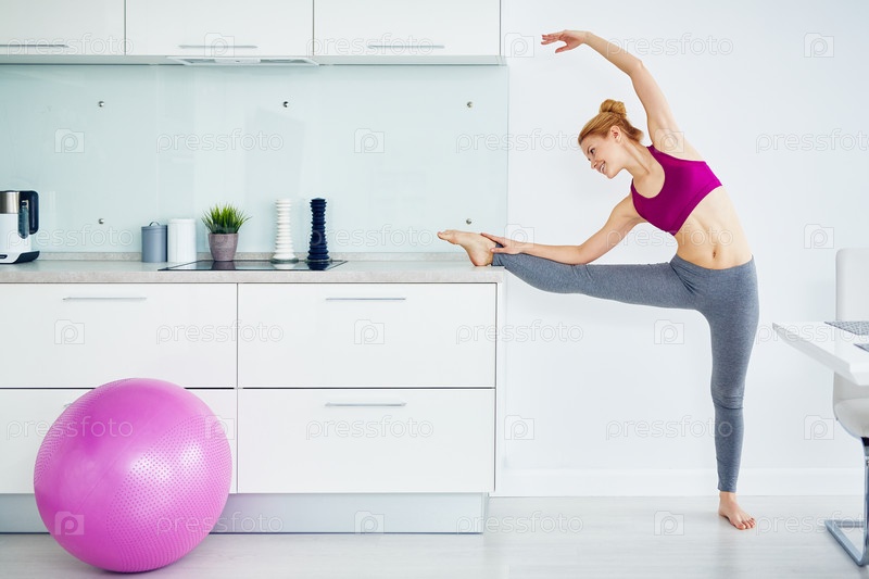 Красивая женщина практикует растяжку