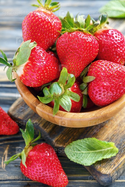 Спелая клубника в деревянной миске