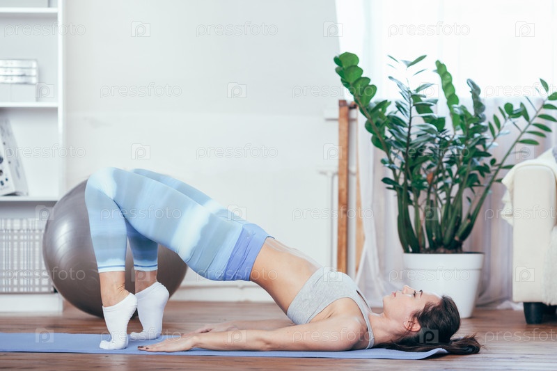 Девушка занимается фитнесом дома