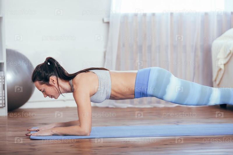 Девушка занимается фитнесом дома