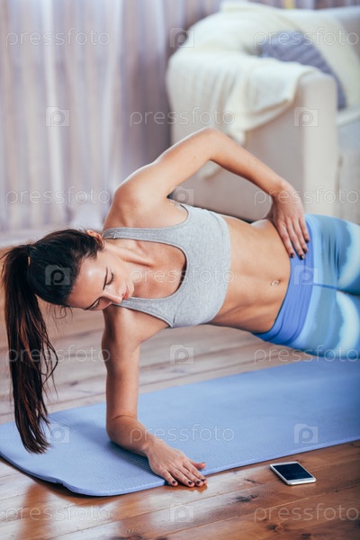 Девушка занимается фитнесом дома