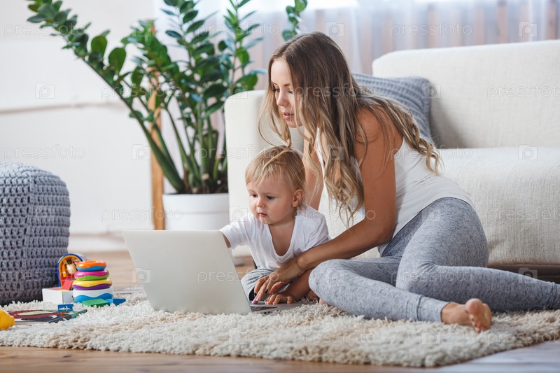 Мать с сыном за ноутбуком