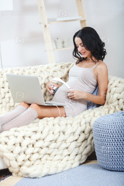 Красивая молодая беременная женщина с ноутбуком