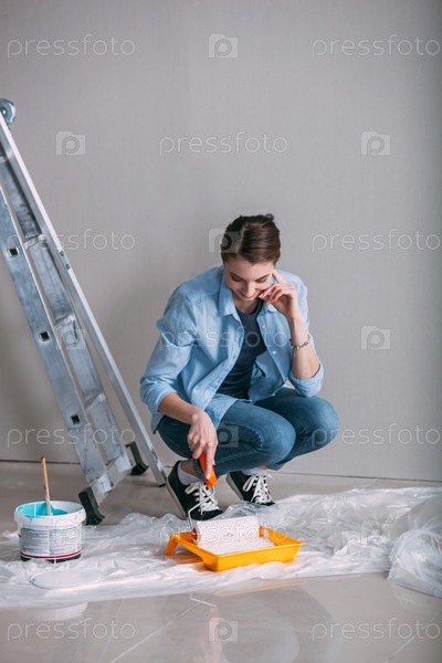 Женщина делает ремонт