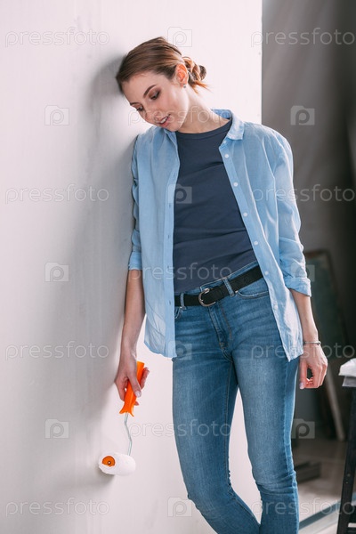 Женщина красит стену