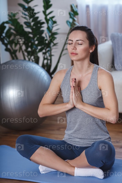 Девушка занимается йогой дома