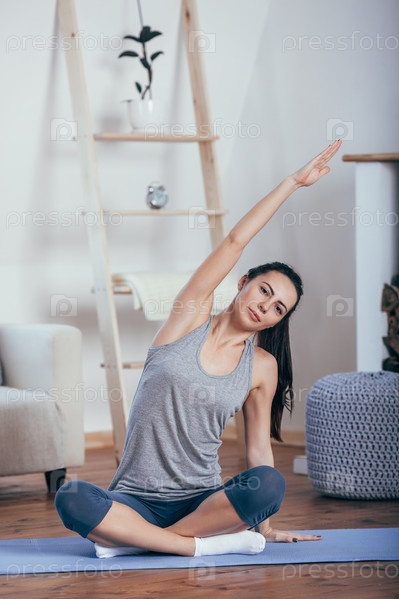 Девушка занимается йогой дома