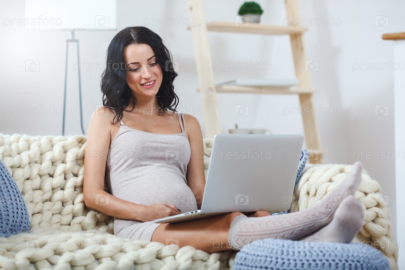 Красивая молодая беременная женщина с ноутбуком