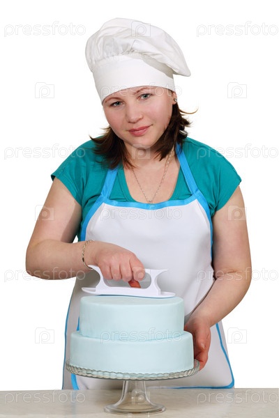 Девушка готовит торт