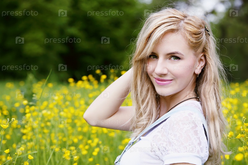 Женщина на лугу с желтыми цветами