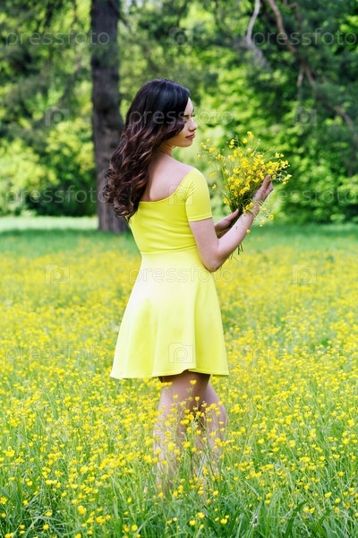 Красивая девушка на природе с цветами
