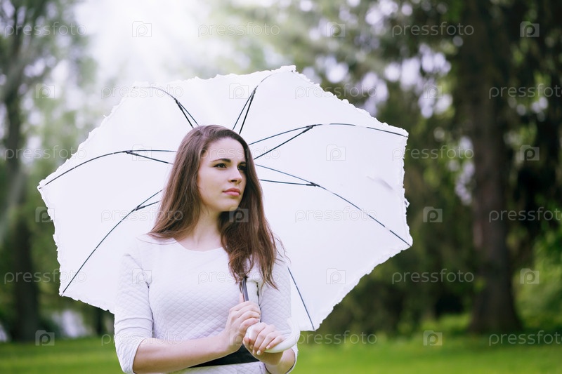 Красивая девушка на природе с зонтом