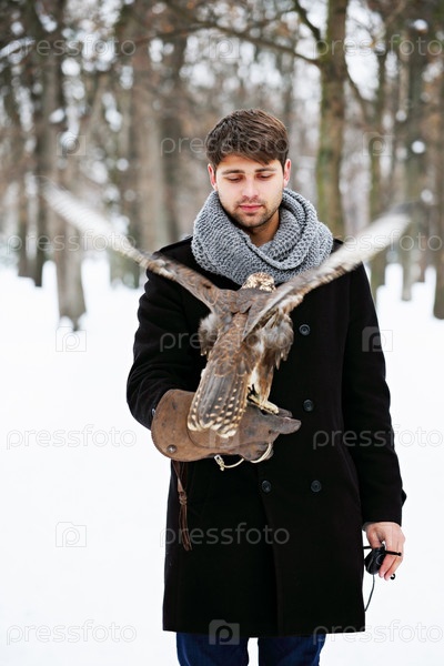Мужчина держит сокола