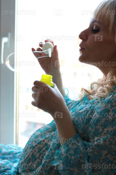 Беременная женщина с мыльными пузырями