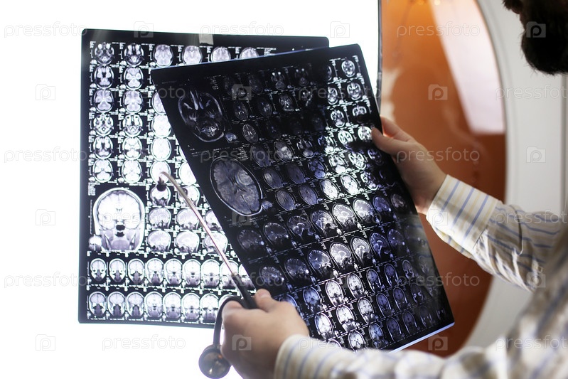 Доктор со снимками головного мозга