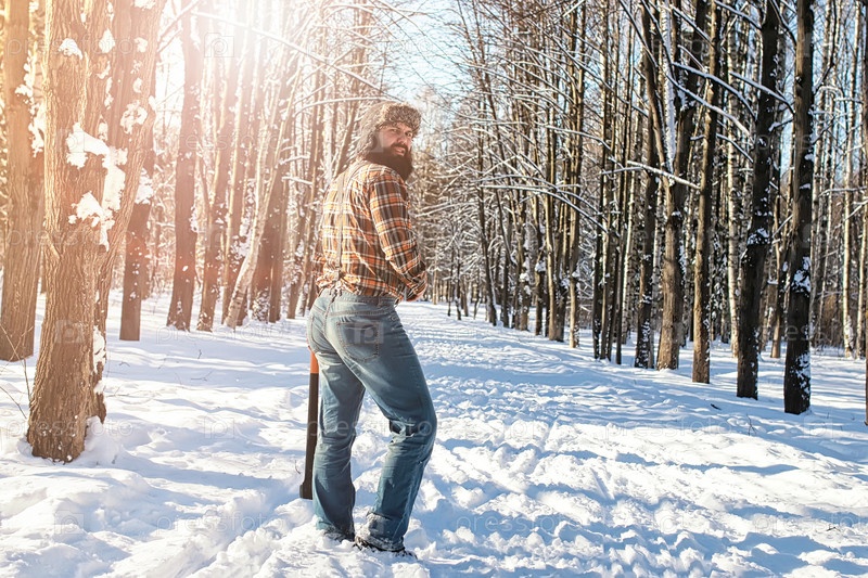 Мужчина с топором в лесу
