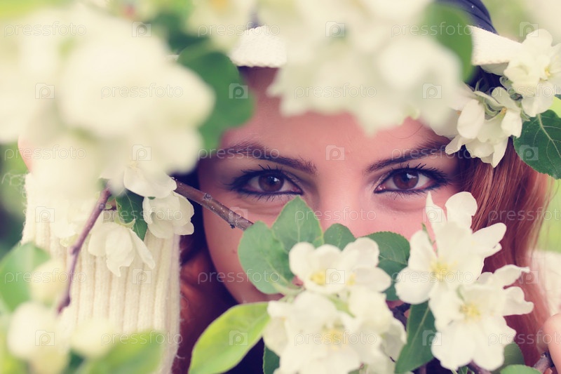 Девушка с весенними ветками