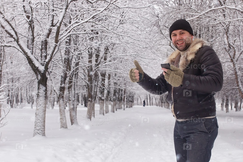 Мужчина в зимнем парке