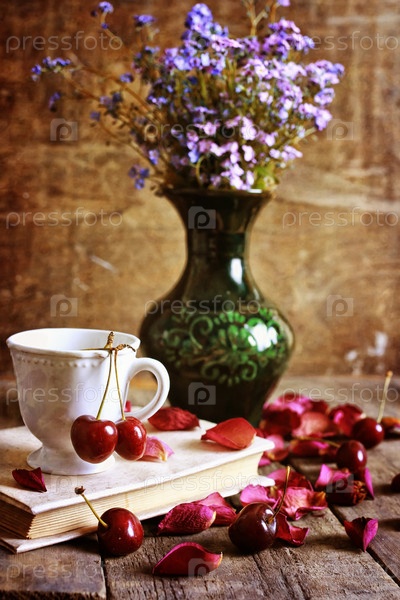 Черешня и лепестки роз