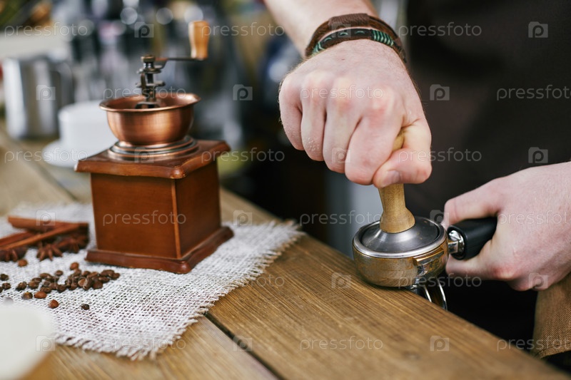 Бариста, делающая кофе в баре