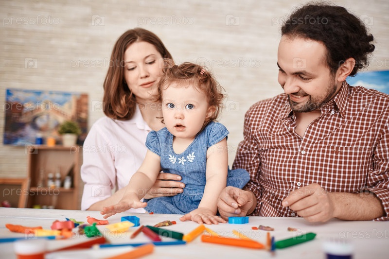 Семья, играя с маленькой девочкой