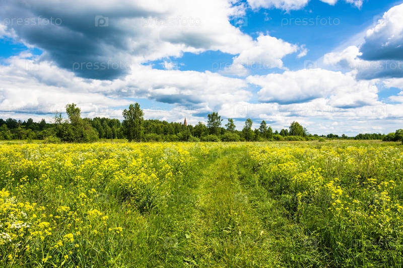 Солнечный летний пейзаж с желтыми цветами