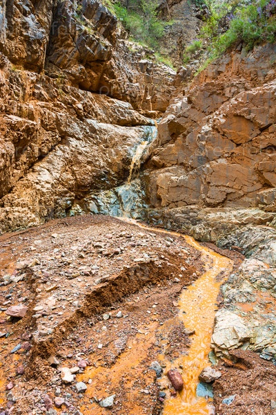 Оранжевая река в скалистых берегах Эолийских гор