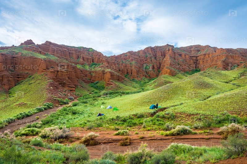 Туристы в Эолийских горах, Кыргызстан