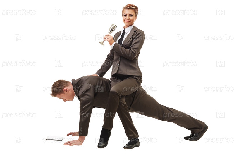 Расслабленный бизнесмен, верхом на коллеге