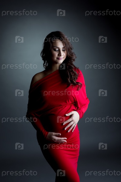 Элегантная беременная мать позирует в студии