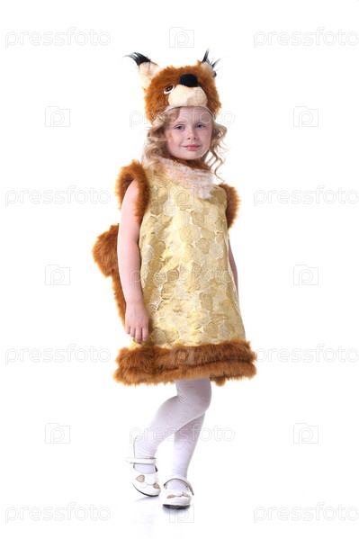 Милая маленькая девочка в костюме белки