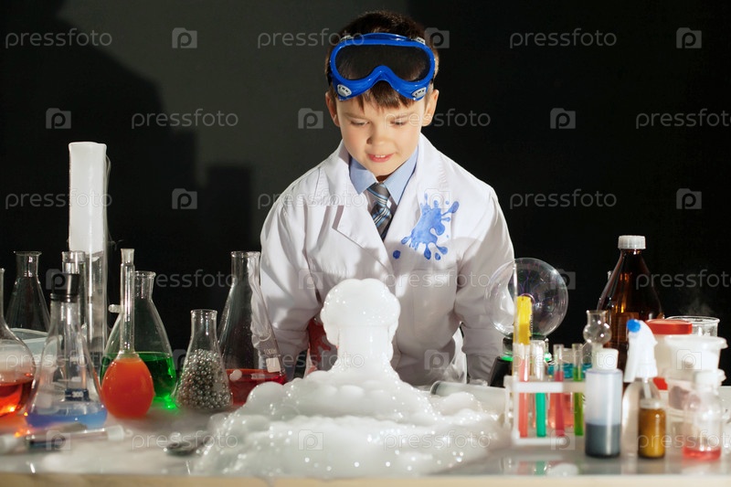 Очаровательный умный мальчик ставит эксперимент