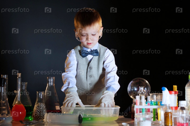Молодой физик, экспериментирующий с реагентами